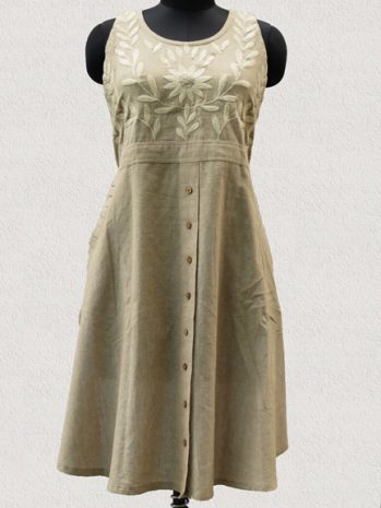 100% Cotton with varied decorative elements / Mix of hand and machine embroidery.
